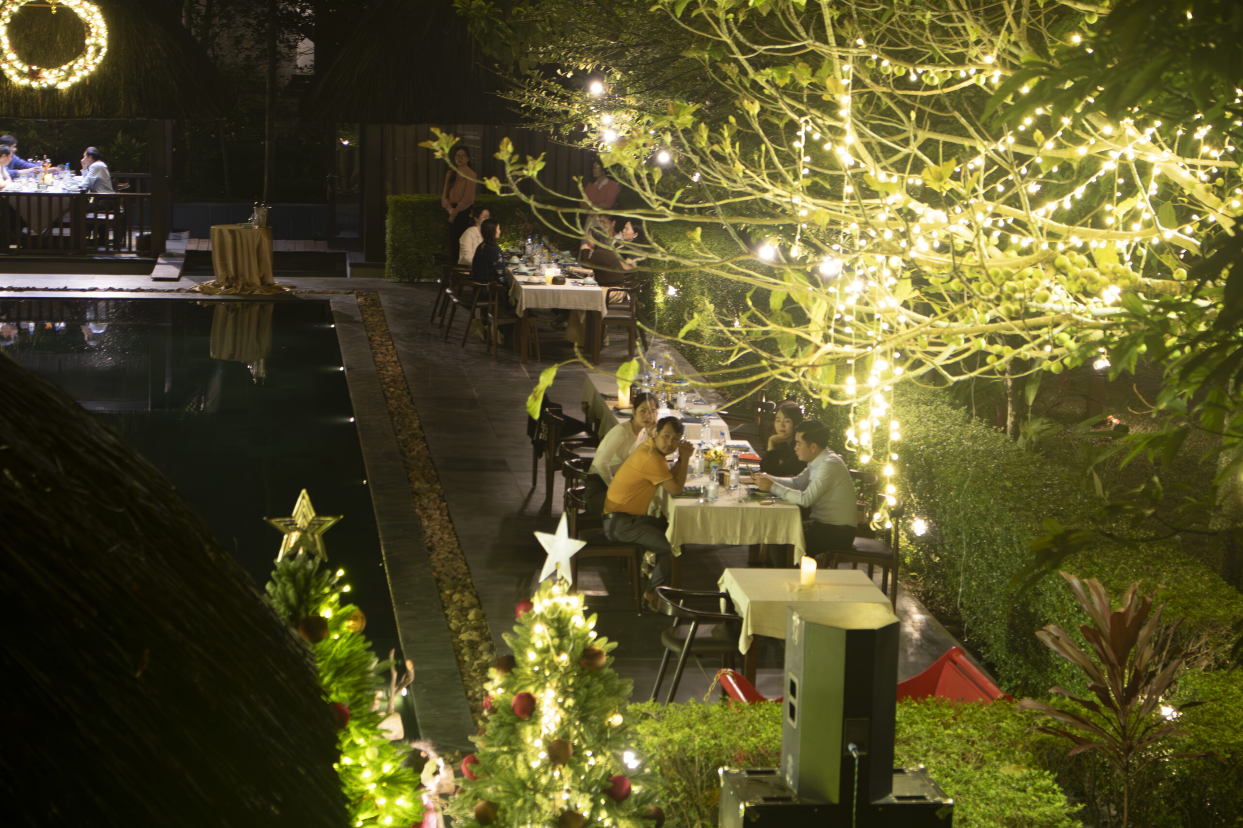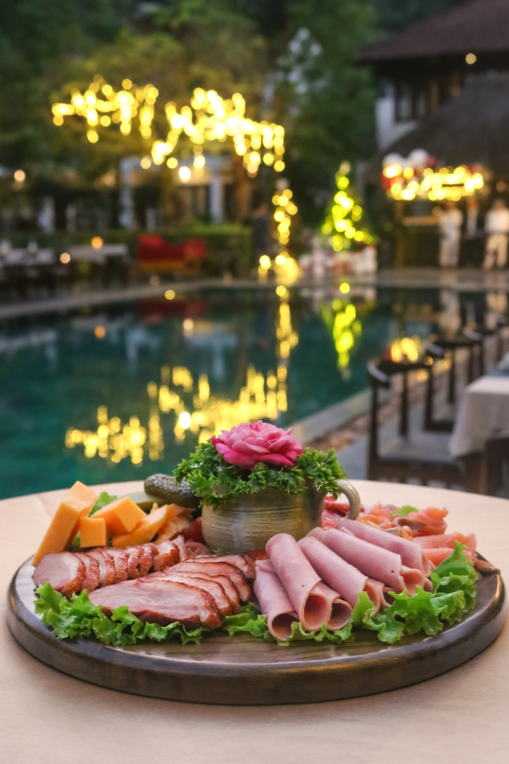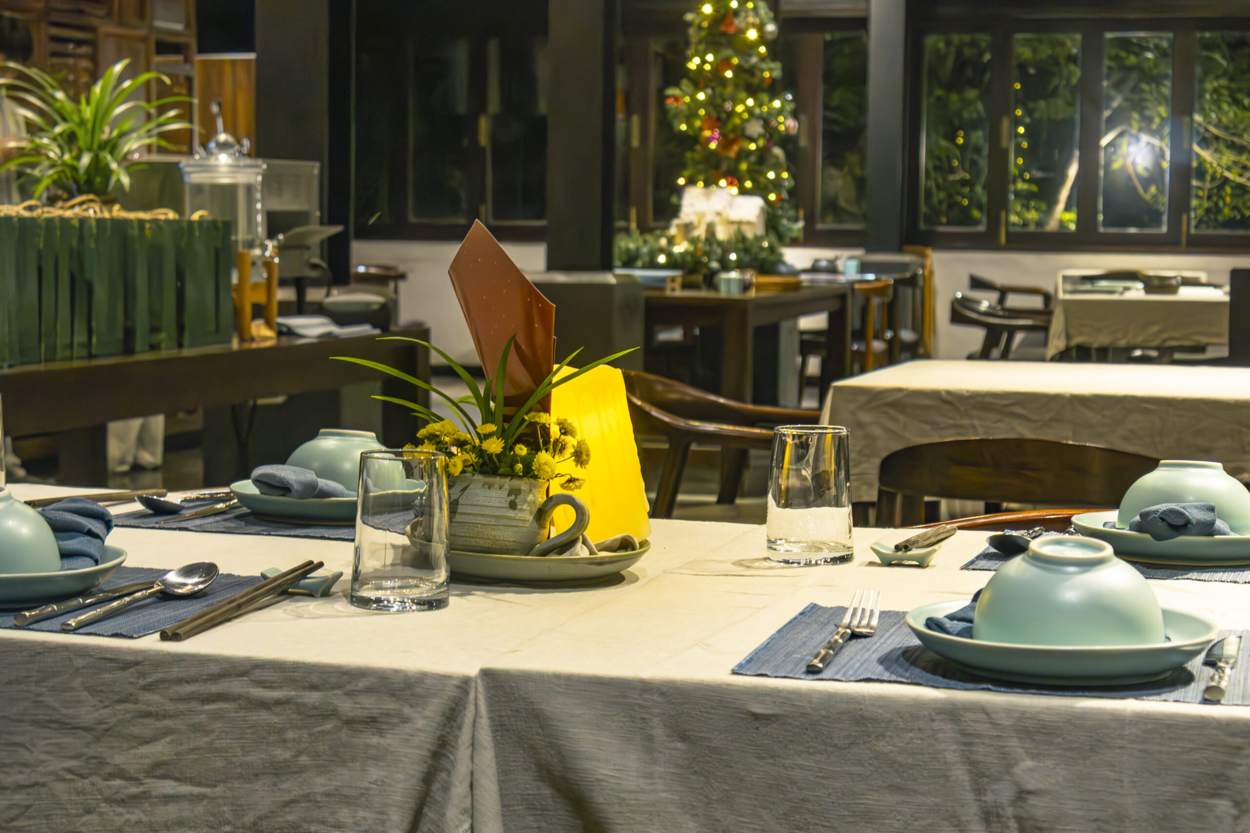 Tại Aravinda, việc dùng bữa là một phần trong hành trình kết nối với thiên nhiên. Bạn có thể bắt đầu ngày mới với bữa sáng ngoài trời dưới tán cây, bên hồ sen hoặc hiên villa hòa trong không khí trong lành và ánh nắng dịu nhẹ.