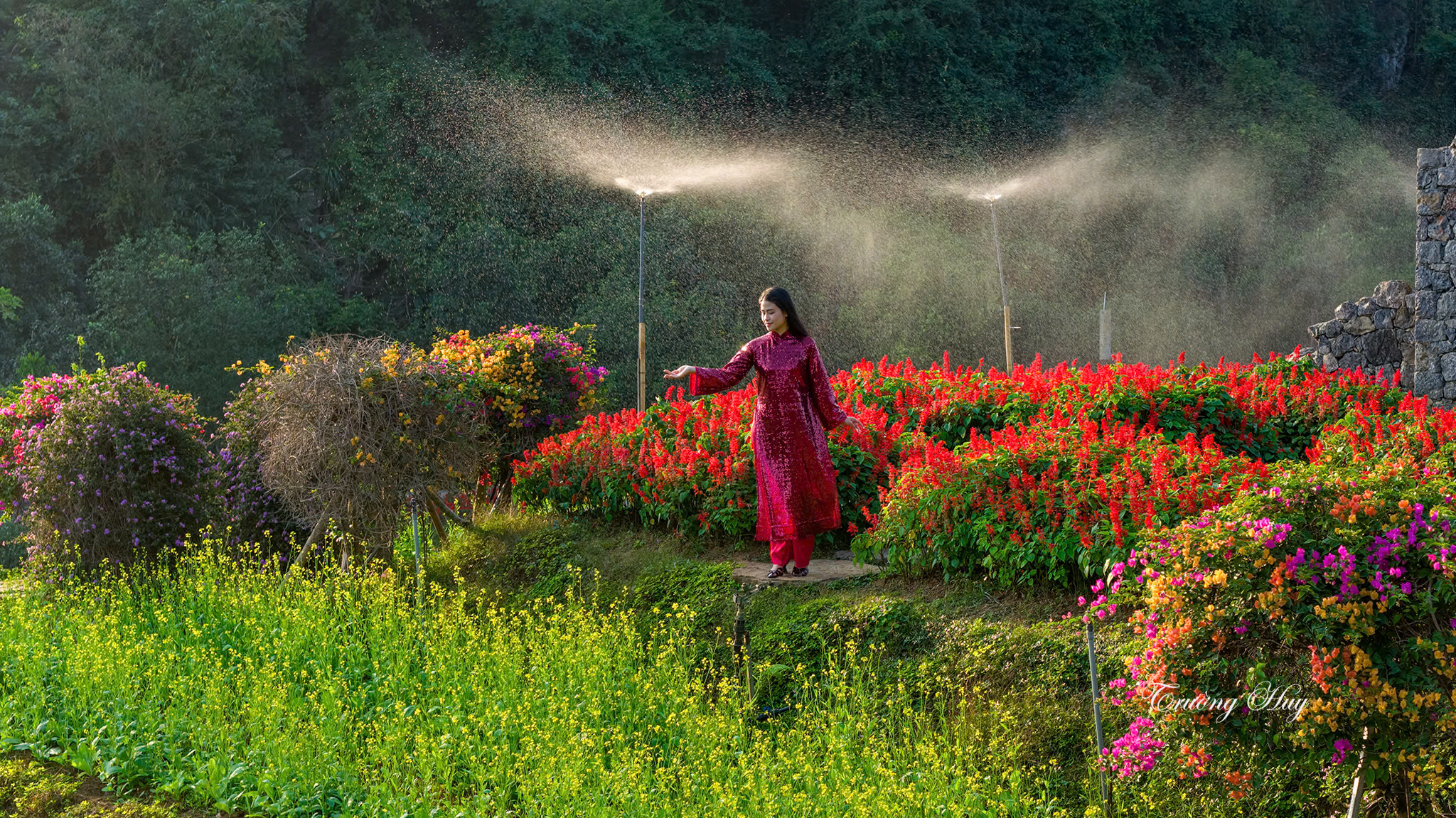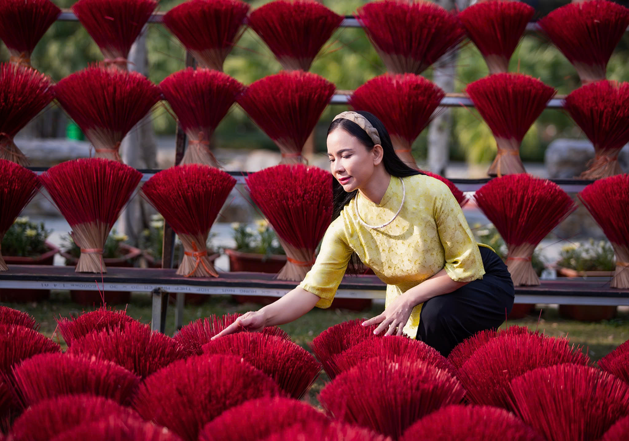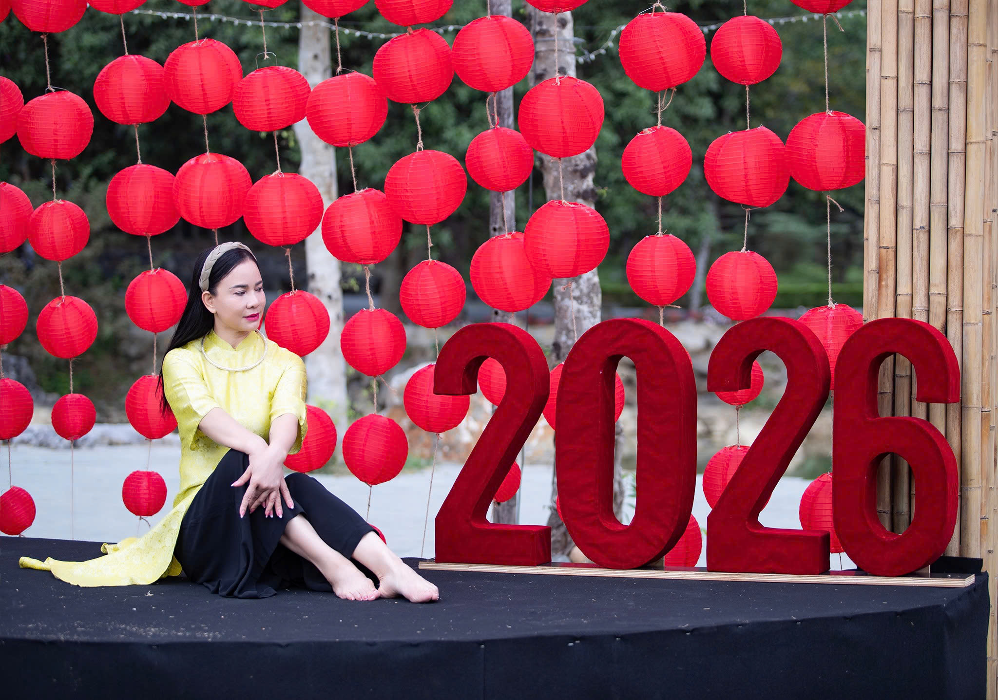 Mỗi độ xuân về, Thung Nham khoác lên mình một diện mạo rất khác. Không ồn ào, không phô trương, mùa xuân in Thung Nham hiện ra nhẹ nhàng qua từng chi tiết nhỏ: sắc đỏ của đèn lồng, hương trầm thoảng bên bàn gỗ cũ, những chùm hoa xuân e ấp bên mái tre, và dáng áo dài mềm mại hòa mình vào không gian văn hóa truyền thống.