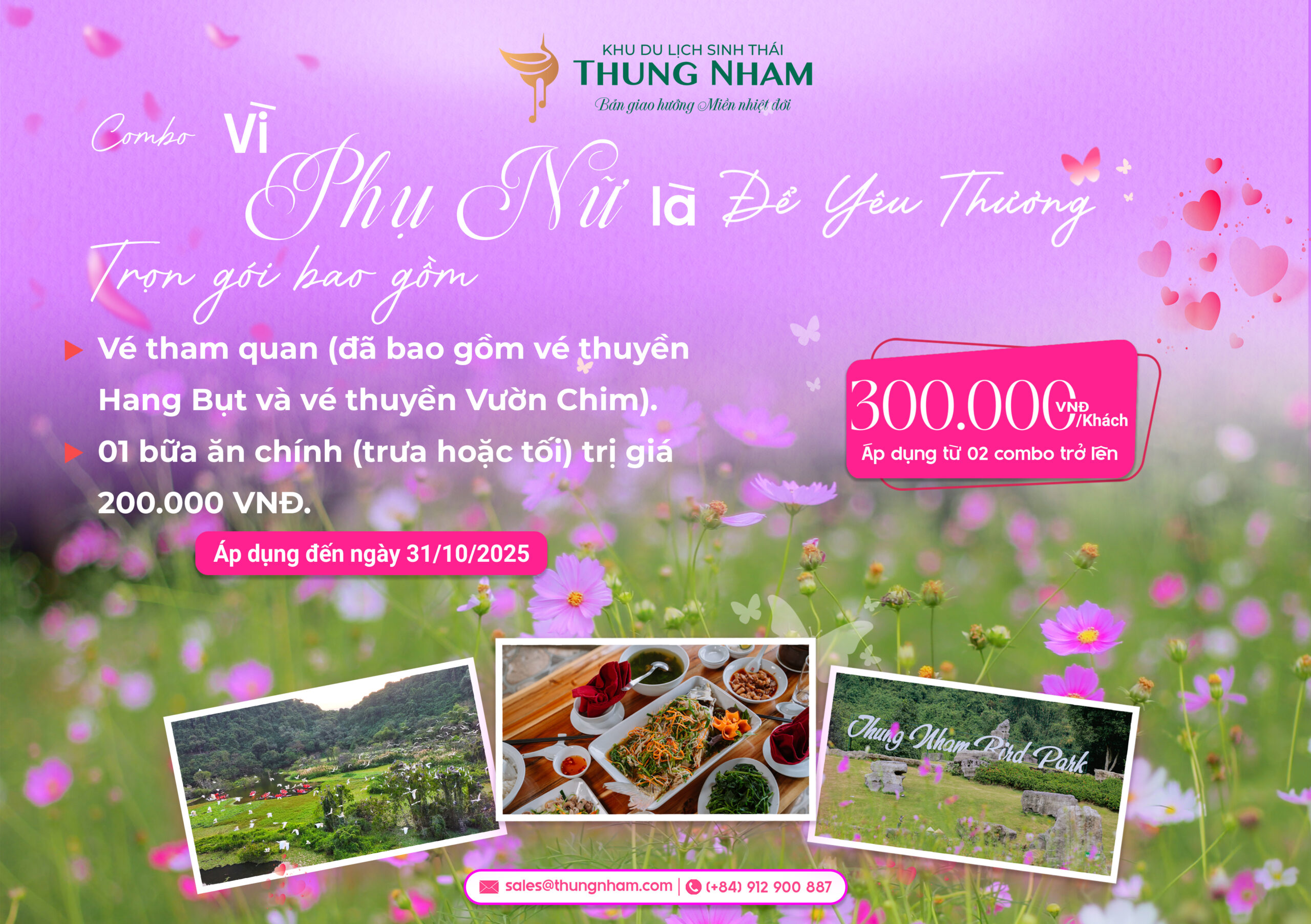 Hãy để combo Ưu đãi 20/10 “Hương Sắc Thung Nham” mang đến cho bạn và người phụ nữ bạn yêu thương một ngày thật trọn vẹn — giữa thiên nhiên xanh, bữa ăn ngon và những khoảnh khắc dịu dàng.